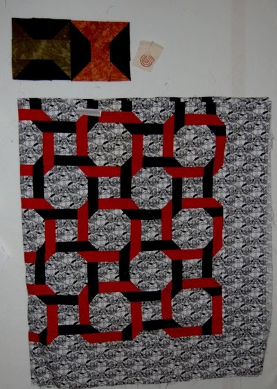 1/4 of a twin size quilt of roller coaster fabric that I made for a daughter. Just needs backing.